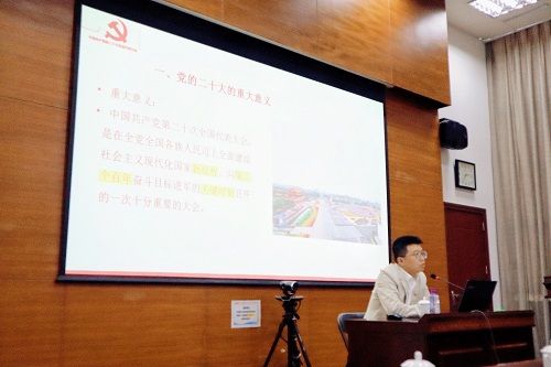 張龍教授從“黨的二十大的重大意義、黨的二十大報告的重要論斷和重大創(chuàng)新、如何準確完整學習貫徹黨的二十大精神”等三個方面做了深入淺出的分析和解讀,同時將黨的二十大精神與廣東省、珠海市的發(fā)展實際相結合,重點詮釋了特區(qū)精神,分析了珠海城市發(fā)展的優(yōu)勢,也解讀了“產業(yè)第一、交通提升、城市跨越、民生為要”工作總抓手的目的和意義。講座主題鮮明,點面結合,以豐富的案例、詳實的數(shù)據和通俗的講解,使大家對黨的二十大精神的核心要義、精神實質、豐富內涵和實踐要求有了更深入的理解。