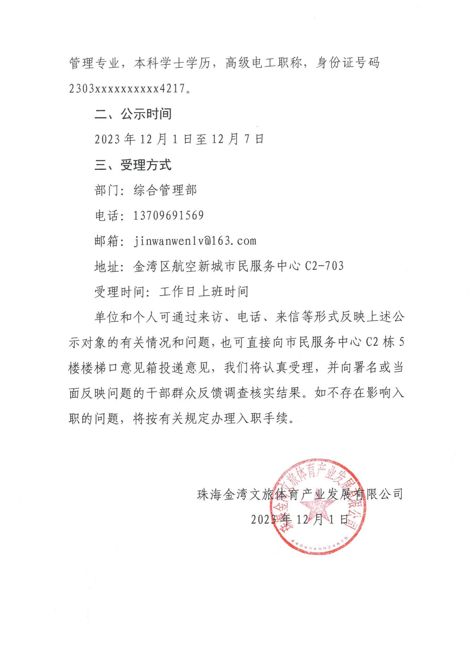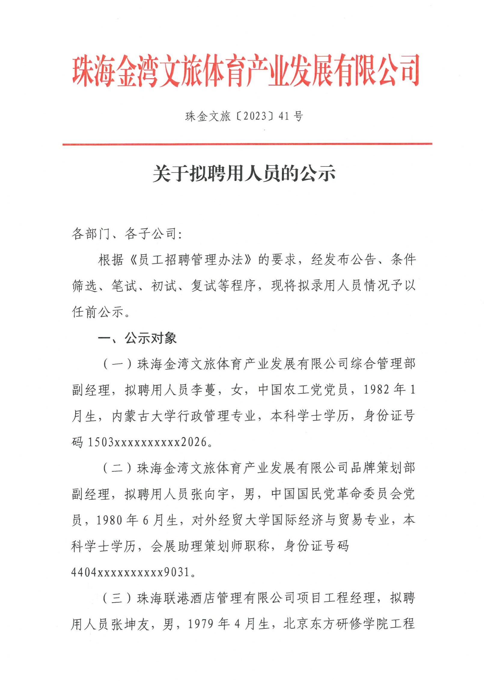 珠金文旅〔2023〕41號 關于擬聘用人員的公示