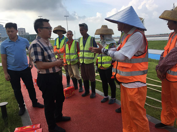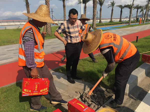慰問(wèn)組一行先后來(lái)到金山公園、金灣路,分別慰問(wèn)園林綠化、市政道路管養(yǎng)、水利等一線作業(yè)員工。“你們辛苦了,感謝你們?yōu)槲拿鞒鞘懈冻龅男燎诤顾团Α?,鄒湘斌董事長(zhǎng)對(duì)他們?yōu)榫S護(hù)城市環(huán)境衛(wèi)生作出的努力表示感謝,進(jìn)一步了解了員工的工作情況及困難,并再次叮囑他們在烈日和高溫下作業(yè)要采取有效防暑降溫和安全生產(chǎn)保障措施,以健康的身體和愉悅的心情投入到工作中。