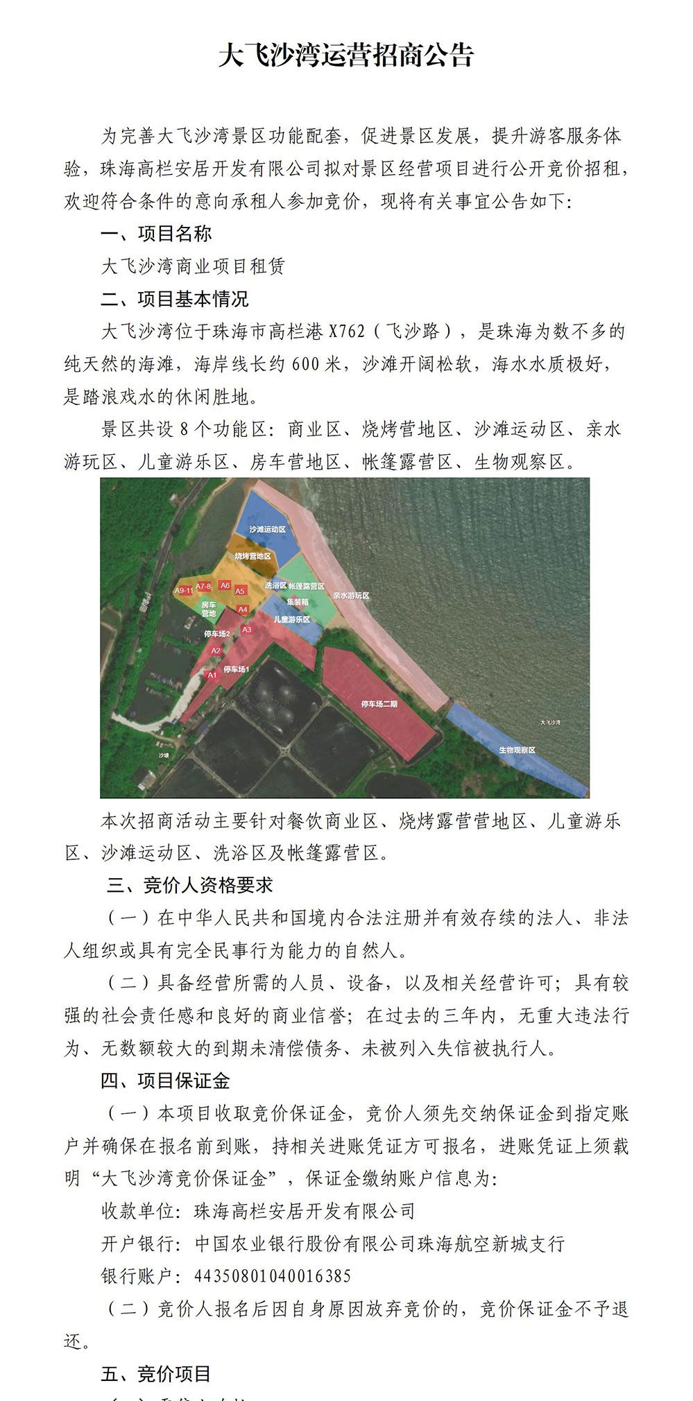 大飛沙灣運(yùn)營(yíng)招商公告