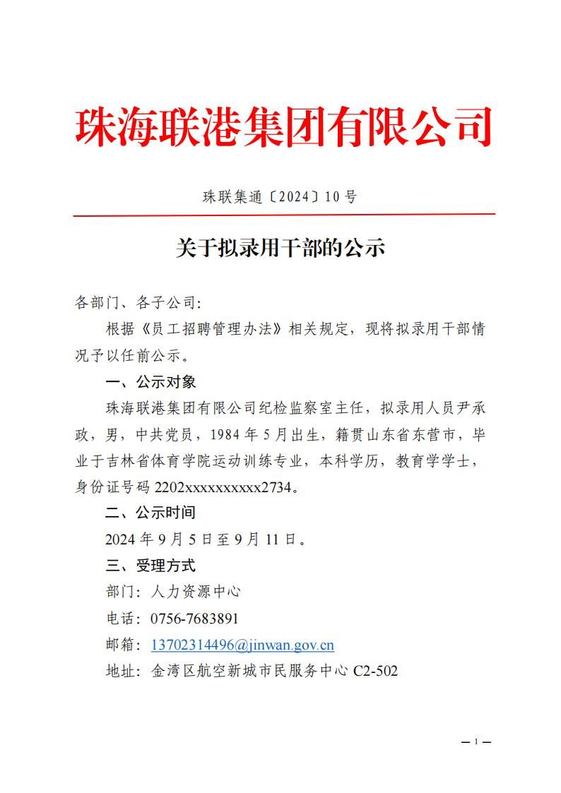 珠聯(lián)集通〔2024〕10號 關于擬錄用干部的公示