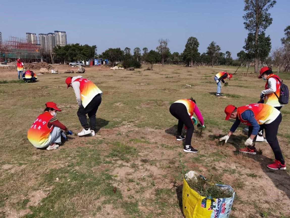 一抵達現(xiàn)場,志愿者們就帶上手套和垃圾袋等工具,爭分奪秒、熱火朝天地干了起來。拔草、清運雜草、清理石塊和垃圾┈“眾人拾柴火焰高”,經過大家的辛勤勞動,很快將整片枯死的時花、地面石塊、垃圾清除干凈,看著被清理后美麗的草地,大家雖然感覺疲憊,但是心里卻十分的開心,感受到了勞動帶來的樂趣。