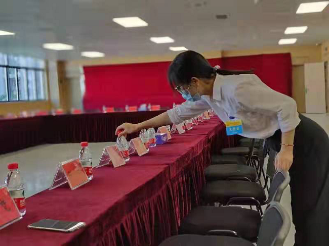 據(jù)統(tǒng)計(jì),本次黨代會(huì)我司共派出83名工作人員參與會(huì)務(wù)保障工作,承接大小會(huì)議10場次,接待會(huì)務(wù)人員1350多人次,達(dá)歷史之最;會(huì)前配合區(qū)職能部門完成參會(huì)人員緊急核酸采樣工作,開展應(yīng)急演練2次;會(huì)議期間更換幕簾調(diào)整擺臺(tái)10余次,有力保障會(huì)議順利召開。