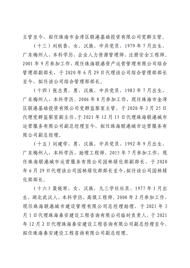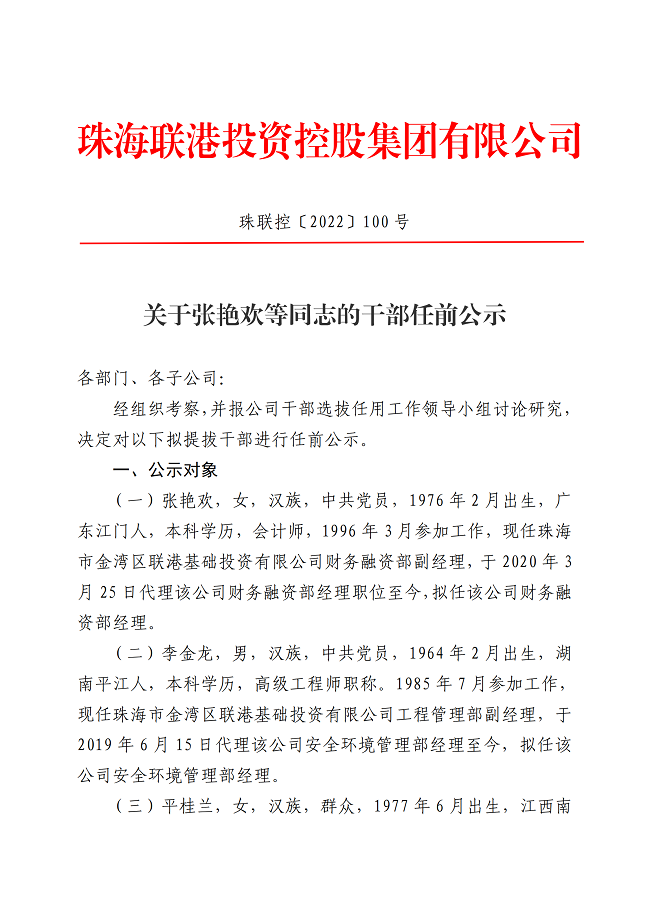 關(guān)于張艷歡等同志的干部任前公示