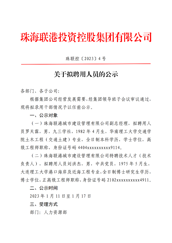 珠聯(lián)控〔2023〕4號 關于擬聘用人員的公示